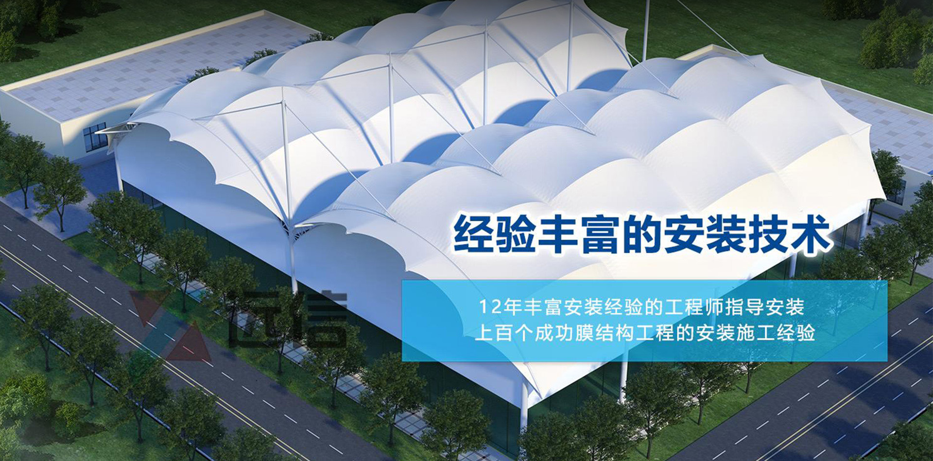 3.從結(jié)構(gòu)設(shè)計上降低膜材安裝難度選用膜材均為國產(chǎn)或進(jìn)口優(yōu)質(zhì)膜材料,高強拉力,優(yōu)質(zhì)抵抗老化涂層